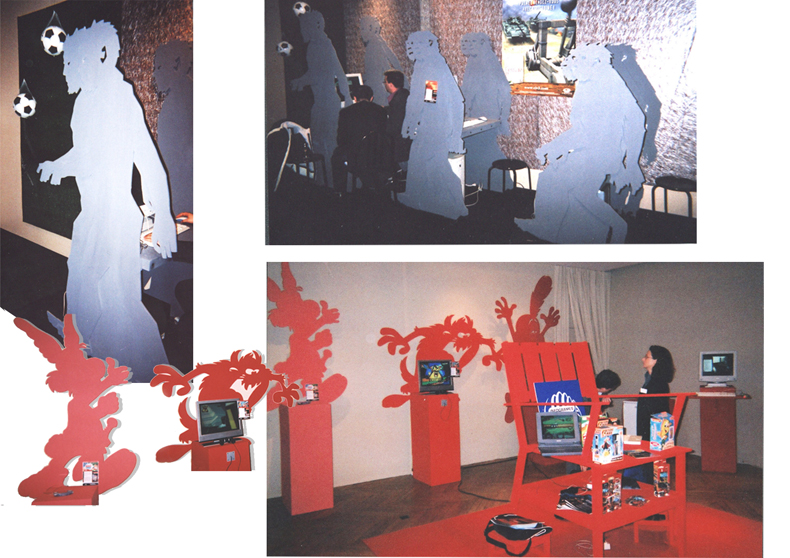 Réalisation et installation de personnages pour une exposition de jeux vidéos. Paris 16e.